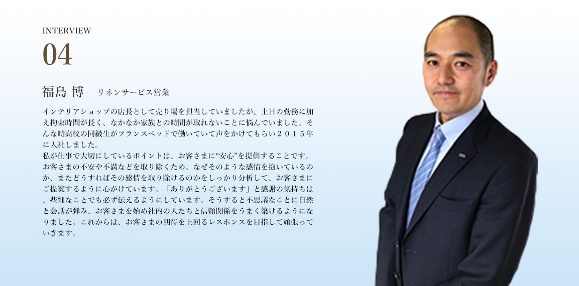 幅広い事業領域で「製造から販売まで一貫して行えること」それがフランスベッドの強みです。
