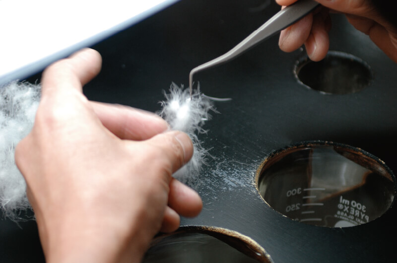 We use natural underflowing water to wash the down. Other companies sometimes omit the cleaning process to reduce the cost, however, we think that the unseen part shows the attitude of the manufacturer. By making consistent production at FRANCE BED Shizuoka factory, we can offer 3-year warranty for the outer and 10-year warranty for the down, which no other companies in this industry can do this. JOORYU has 2 meanings in Japanese. One is “high quality” and the other is “distillation”. FRANCE BED’s duvet has both of them.